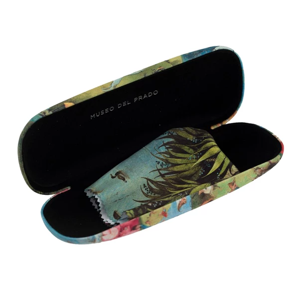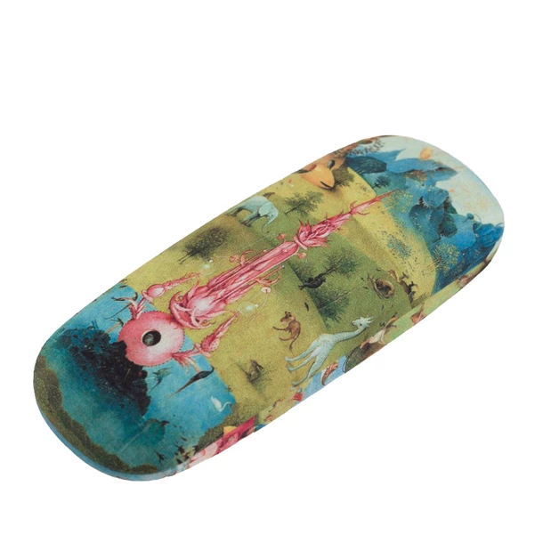 Cet étui à lunettes reproduit un détail du triptyque de Hieronymus Bosch (vers 1450 -1516), « Le Jardin des délices terrestres », 1490-1500. Madrid, Museo Nacional del Prado.