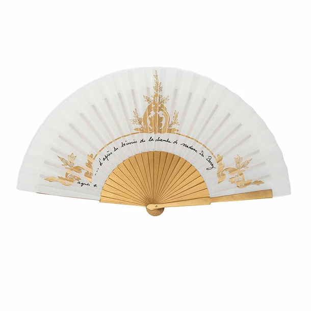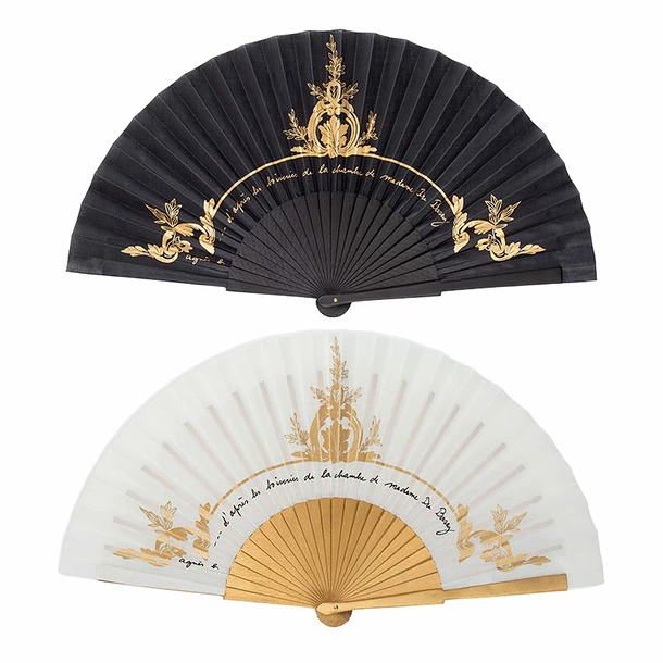 Cet éventail conçu « d’après les boiseries de la chambre de Madame du Barry », fait partie des 4 pièces exclusives créées par agnès b. autour de Versailles.
