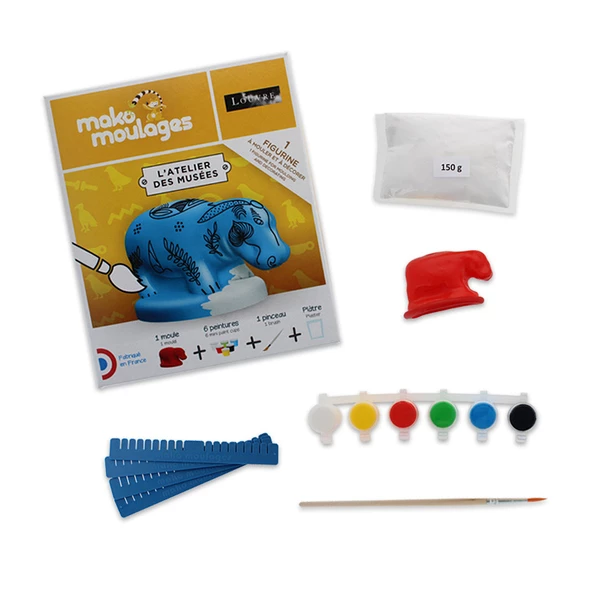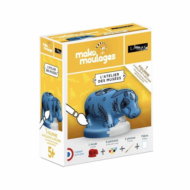 Cet hippopotame en faïence égyptienne bleu vif qui date d’environ 2000 avant J.-C., figé dans l’attitude de la marche, semble se glisser dans l’onde au milieu des plantes aquatiques dont il est décoré. Son excellent état de conservation et ses grandes dimensions en font un objet exceptionnel.