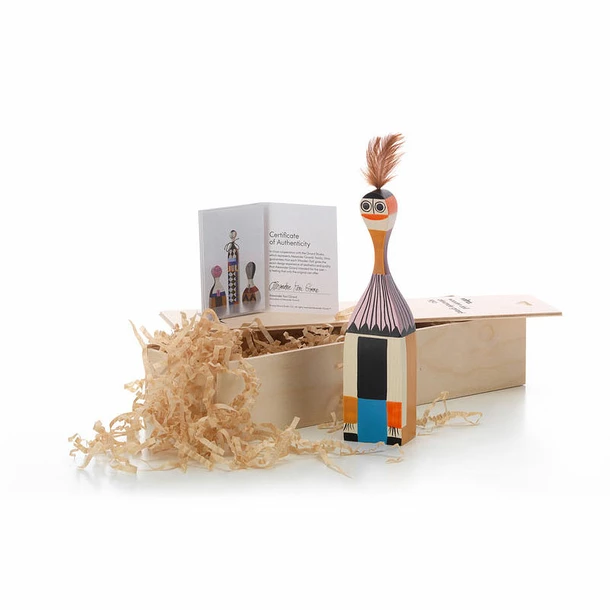 Les Wooden Dolls d’Alexander Girard sont une grande famille de figures en bois représentant des personnages humains et des animaux. Girard les dessina en 1952 pour son propre usage en tant qu’objets décoratifs dans sa maison de Santa Fe. Ces originaux, qui font partie de la succession Girard dans les fonds du Vitra Design Museum, ont servi de modèles pour les rééditions actuelles. Fidèlement reproduites jusque dans les moindres détails, les Wooden Dolls aux caractères très variés sont encore de nos jours fabriquées et peintes à la main, tout comme les versions originales d’Alexander Girard. Et même si elles ne se distinguent que par des petits détails, chaque figurine en bois est un produit singulier, individuel, véritablement unique au monde.