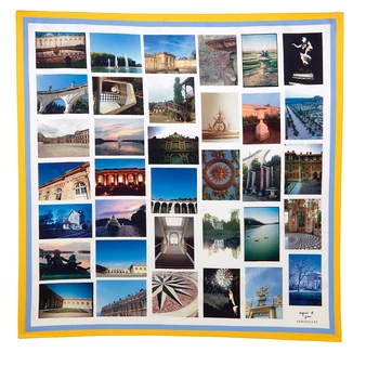 Ce foulard en soie est composé de photos du château et du parc de Versailles, prises par agnès b. au fil des ans. Il fait partie des 4 pièces exclusives créées par agnès b. autour de Versailles.