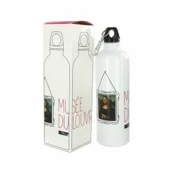 Cette gourde reprend un détail de l’œuvre de Léonard de Vinci, Portrait de Lisa Gherardini, dite Monna Lisa ou la Joconde.
