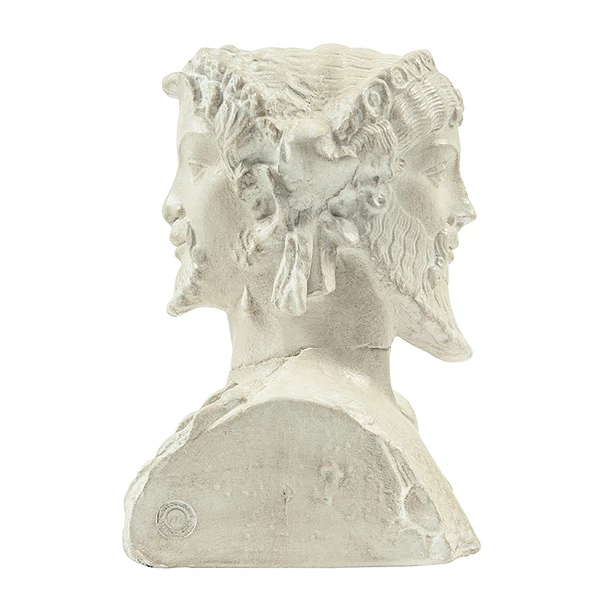 Quoi qu’il en soit, le goût latin pour les « Janus », une mode volontiers archaïsante, et le rétablissement des fêtes des carrefours (compitales) par Auguste, approuvent assez bien le choix de l’association et le beau style de cette sculpture.