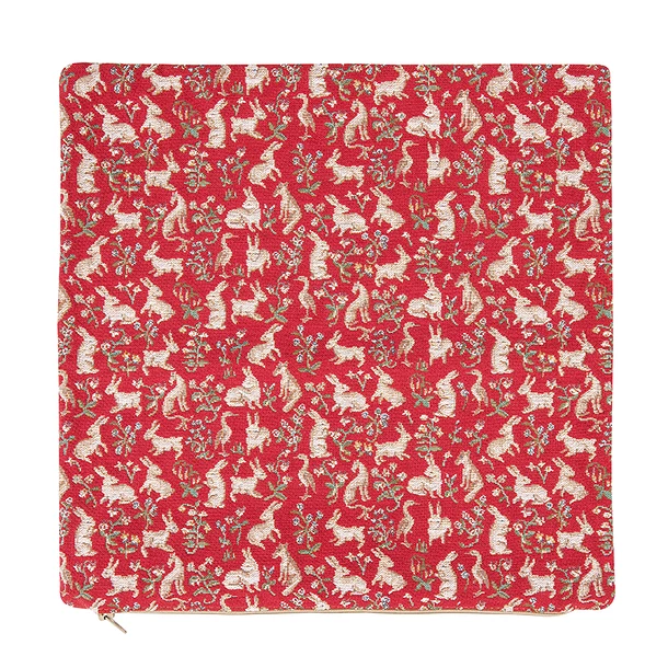 Housse de coussin reprenant les détails des célèbres tentures de la Dame à la licorne l’odorat et la vue, conservées au Musée national du Moyen-Âge Cluny à Paris.