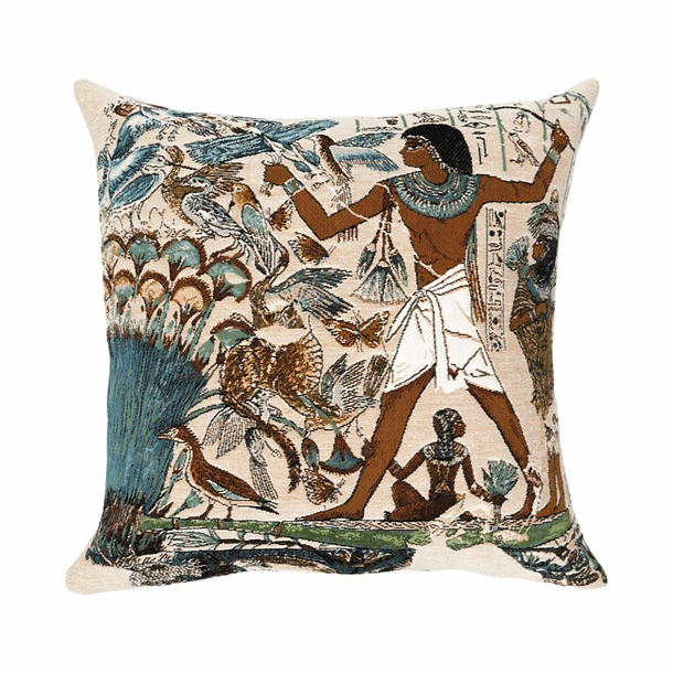 Cette housse de coussin Nebamun représente une fresque du tombeau d’un scribe du temple de Thèbes.