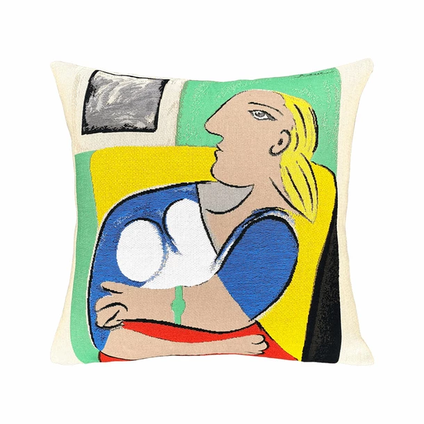 Housse de coussin Picasso d’après l’œuvre « Femme dans un fauteuil jaune » peinte en 1932. Osez l’accessoire déco « Arty » pour agrémenter votre canapé