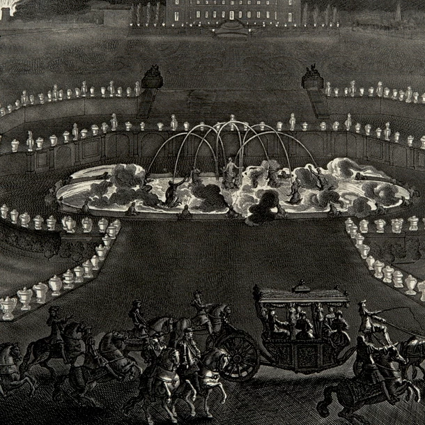 La fête du 18 juillet 1668, fut relatée en 1674 par André Félibien dans Divertissements donnés par le Roy au retour de la conquête de la Franche-Comté et le texte illustré par des estampes témoignant du luxe des soirées à la cour de Louis XIV.
