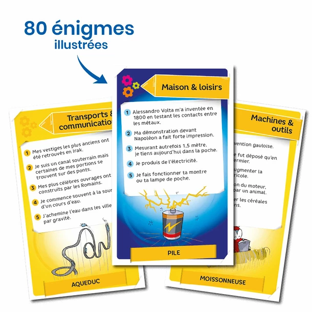 Avec Énigmes – Découvertes et inventions, tentez d’être le plus rapide à deviner les découvertes et inventions qui se cachent derrière 5 indices instructifs et amusants.
