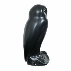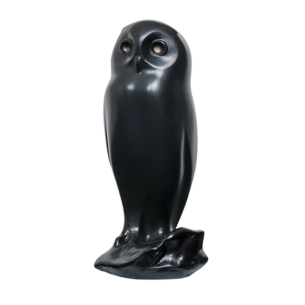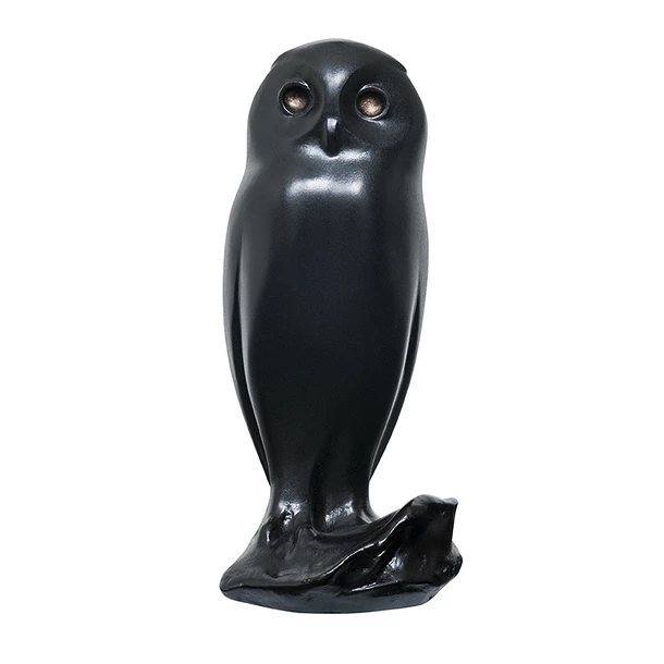 En réaction à l’expressionnisme de Rodin, François Pompon se tourne vers la thématique animalière, en s’inspirant des animaux qu’il observe au Jardin des Plantes. La chouette est représentée dans une position statique. L’épuration de la ligne et le polissage de l’œuvre mettent en valeur les yeux et contribuent à donner cette impression de fixité attentive qui caractérise cet oiseau. Pompon travaille le thème des chouettes entre 1918 et 1923. Il en existe deux versions, soit avec les yeux saillants, soit avec les yeux creux comme ici.