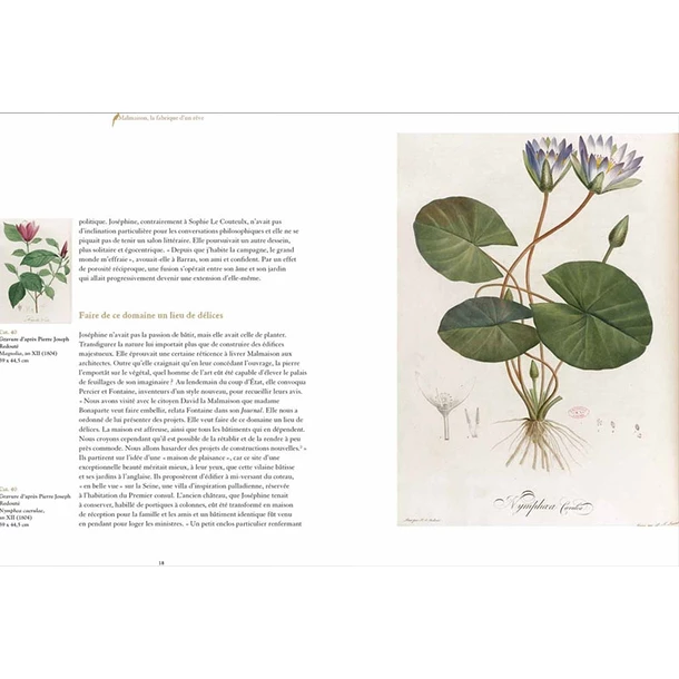 Née Marie Joseph Rose de Tascher de la Pagerie le 23 juin 1763 à la Martinique, elle avait grandi dans les parfums enivrants des îles et chercha toute sa vie à retrouver cette Arcadie perdue. Le domaine de Malmaison, acheté par Bonaparte en 1799, lui permit de réaliser ce rêve. Entourée des plus grands botanistes de son temps, elle en fit le plus beau jardin d’Europe et y installa sa collection d’oiseaux exotiques et de plantes rares. Ses roses, ses animaux et les aménagements du parc furent immortalisés par de nombreux artistes, notamment Pierre Joseph Redouté, et par les témoignages éblouis des visiteurs.