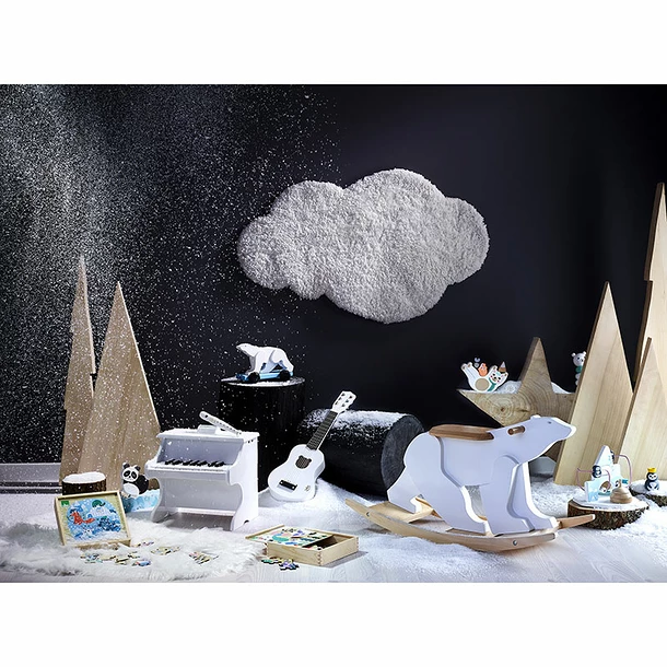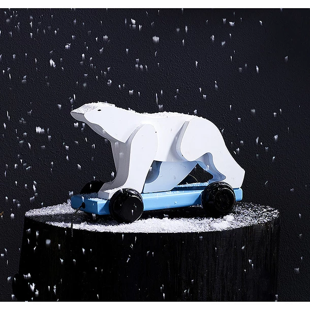 Ce jouet à traîner en bois s’inspire de la célèbre sculpture de l’Ours blanc de François Pompon.