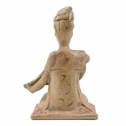 Cette statuette accompagnait le défunt dans sa tombe, réplique exacte de sa résidence et du train de vie de son vivant où la musique et la danse, enrichies de nouveaux orchestres, artistes et instruments venus des oasis de l’Asie centrale, occupaient une large part des activités.