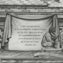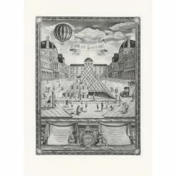 Une estampe spécialement éditée sur les cuivres de l’atelier de chalcographie du musée du Louvre reproduit le dessin préfigurant l’intervention de l’artiste au Louvre en 2016.