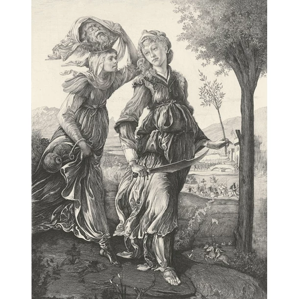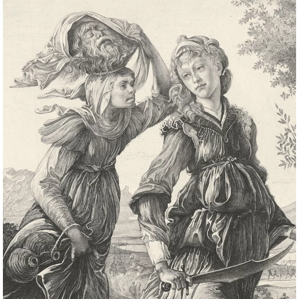 Cette estampe est une reproduction d’un tableau de Sandro Botticelli, Judith, gravé par Jean Patricot