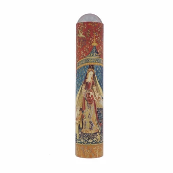 Ce kaléidoscope est illustré d’un détail de la célèbre tapisserie visible au musée du moyen âge de Cluny, la Dame à la Licorne.