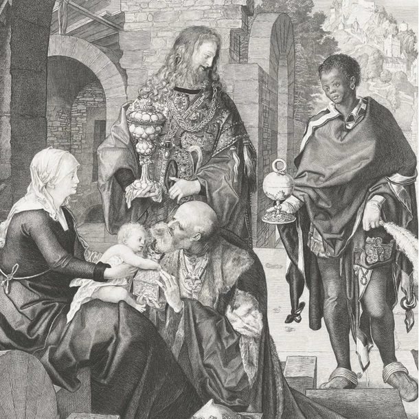 Planche gravée par A. Coppier (1866-1948) au début du 20e siècle d’après un tableau d’Albrecht Dürer de 1504