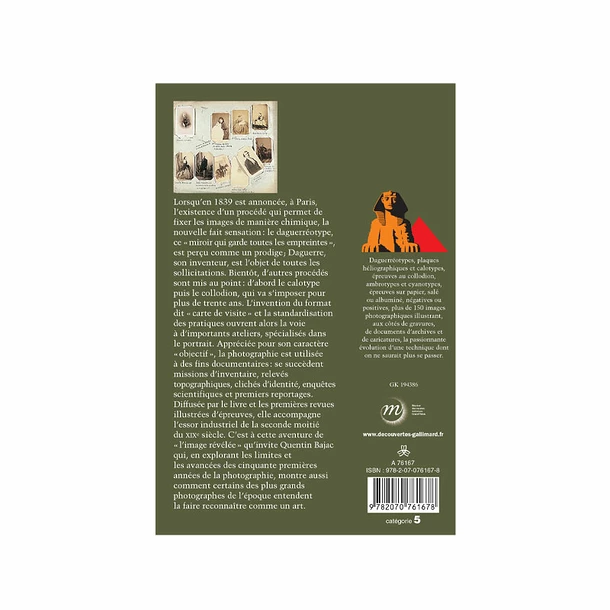 Daguerréotypes, plaques héliographiques et calotypes, épreuves au collodion, ambrotypes et cyanotypes, épreuves sur papier, salé ou albuminé, négatives ou positives, plus de 150 images photographiques illustrant, aux côtés de gravures, de documents d’archives et de caricatures, la passionnante évolution d’une technique dont on ne saurait plus se passer.