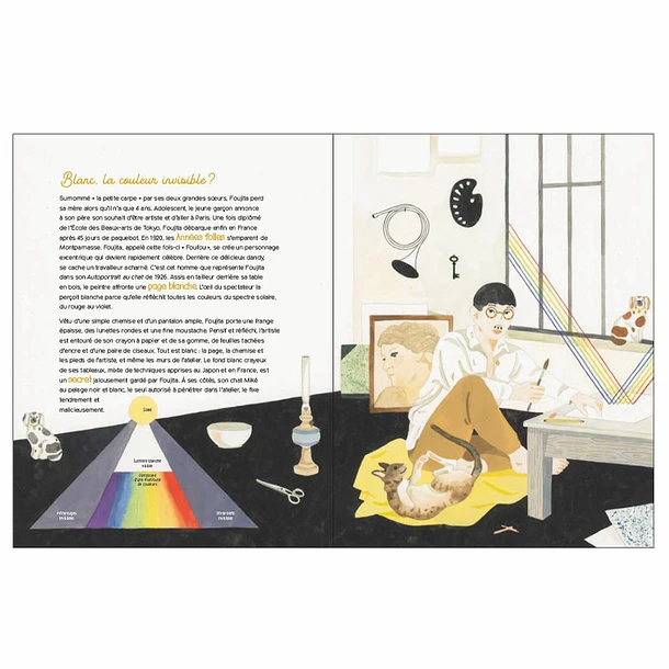 Les textes, courts et rythmés, tout en recontextualisant les œuvres abordées, apportent des réponses simples et éclairantes à des questions scientifiques parfois complexes. L’histoire et la symbolique des couleurs sont abordées dans un champ chronologique, géographique et culturel étendu, de la préhistoire au pop art, du pôle Nord à la Polynésie.