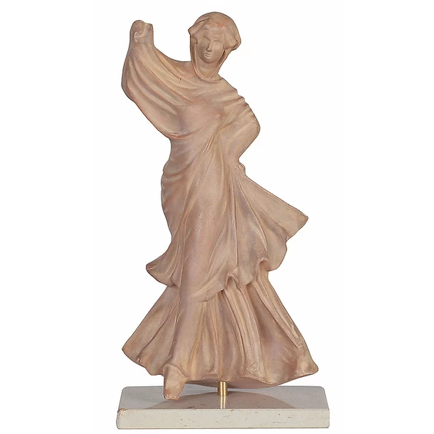 La danseuse amorce une virevolte en avançant le pied gauche, la tête légèrement penchée à droite, l’épaule gauche en retrait, l’épaule droite en avant. Nous ne savons malheureusement rien de cette danse au voile qui préludait peut-être à quelque cérémonie.