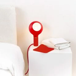 Lampe orange composée d’une douille magnétique à sa base et une ampoule de la même couleur, création de Filotto.
