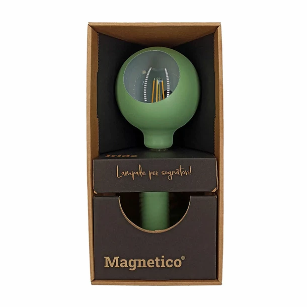 Lampe verte composée d’une douille magnétique à sa base et une ampoule de la même couleur, création de Filotto.