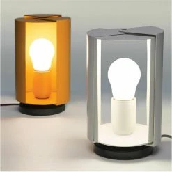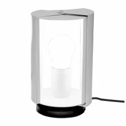 Design innovant pour les années 50 mais toujours moderne pour cette lampe de table de forme simple. Le flux lumineux peut être par l’ouverture ou la fermeture des volets. Composée d’un corps cylindrique ouvert sur deux côtés, où tournent deux écrans, qui permettent l’ouverture et la fermeture du faisceau de lumière, afin de gérer la lumière de façon directe ou indirecte. Base en acier peint gris mat, corps en tôle incurvée peint en blanc. Interrupteur sur le câble.