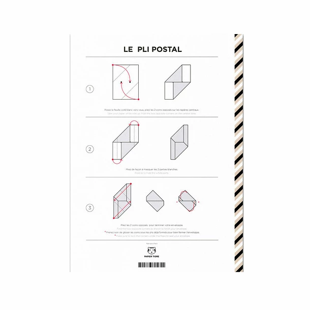 Le Pli Postal permet de marquer toute la singularité de l’écrit. Votre correspondance se pare ainsi d’un geste inédit : plier, timbrer et poster, une nouvelle façon de communiquer !