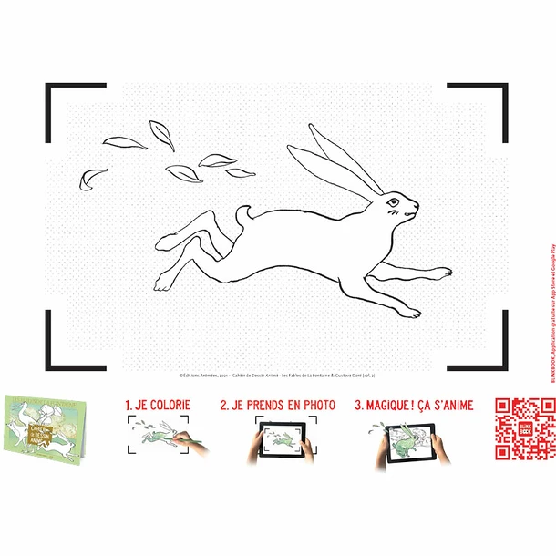 Cahier de coloriage qui se transforme en dessin animé avec l’application BlinkBook.