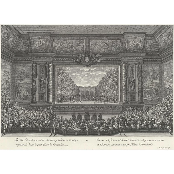 Les somptueuses fêtes données au château de Versailles avaient pour but de distraire la cour du roi et d’exprimer la puissance du souverain. Théâtre, carrousels, feux d’artifice, courses de têtes et de bagues…, offraient le faste aux courtisans qui avaient l’occasion de se faire remarquer auprès du monarque.