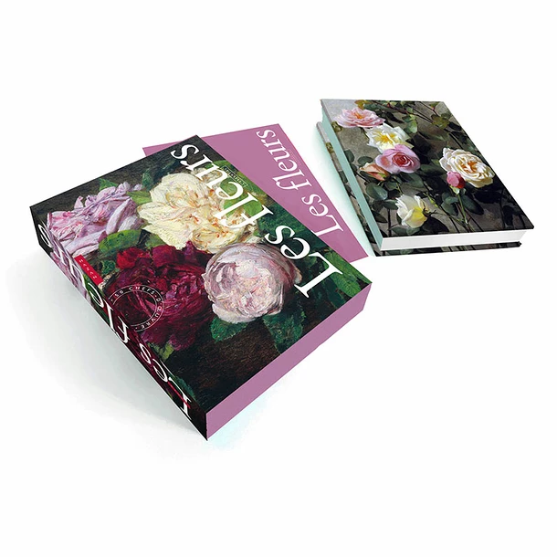 La forme originale de ce coffret permet de s’approcher au plus près des fleurs et d’en percevoir toute la grâce, la richesse des couleurs et des formes : accompagné d’un livret explicatif comprenant une introduction générale et des commentaires détaillés, il contient un livre « en accordéon » tout en images, qui déploie près d’une cinquantaine d’œuvres dont les gros plans magnifient la puissance picturale des fleurs.