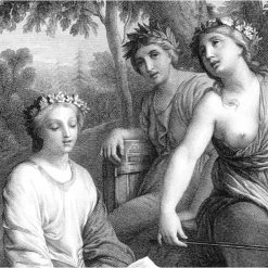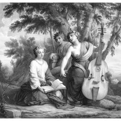 Les trois muses sont figurées en train de participer à un concert champêtre. Polymnie joue de la viole alors que Melpomène, agenouillée semble lire ou chanter une partition. Erato, assise, se tient à l’ arrière-plan de ses compagnes. La scène se déroule devant un ensemble d’ arbres, avec à l’ arrière-plan un paysage de collines et de montagnes.