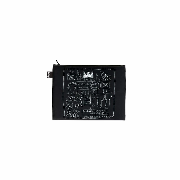 Les pochettes Jean-Michel Basquiat LOQI, imprimées sur les 2 faces, sont fabriquées en taffetas 100% recyclé et certifié GREEN CIRCLE®, STANDARD 100 par OEKO-TEX®, sans substances nocives.