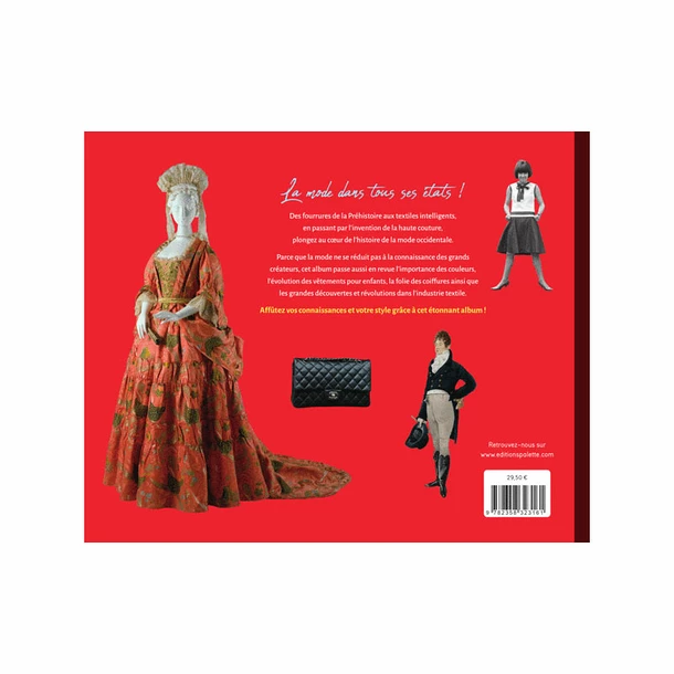Une histoire de la mode occidentale de la préhistoire à nos jours, en passant par l’étiquette à la cour de Versailles et l’invention de la haute couture. L’évolution des vêtements, l’importance des couleurs dans les créations, les coiffures et les grandes découvertes dans l’industrie textile sont notamment abordées.