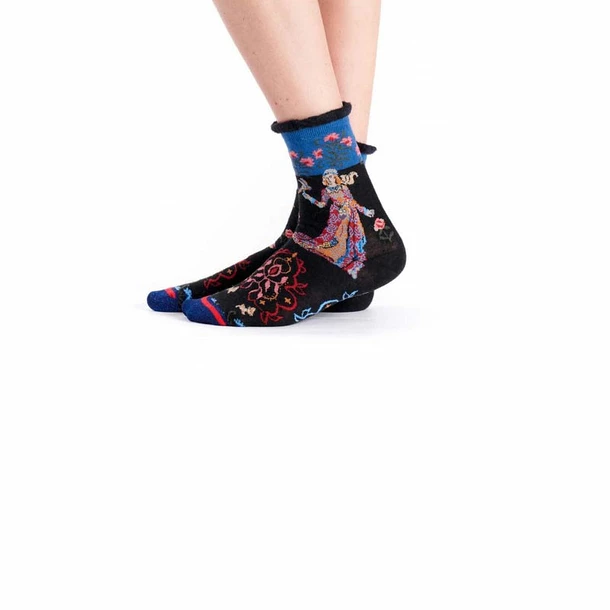 Mi-chaussettes Dame à la licorne, fabriquées en Italie pour FIL DE JOIE.