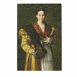 Ce micro puzzle de 150 pièces créé à l’occasion de l’exposition « Naples à Paris. Le Louvre invite le musée de Capodimonte » au musée du Louvre du 7 juin 2023 au 8 janvier 2024 est inspiré d’un détail de l’œuvre de l’artiste Francesco Mazzola dit Parmigianino ou Parmesan (1503-1540), Portrait d’une jeune femme appelée « Antea » (détails), vers 1535. (Huile sur toile. H. 138; l. 86 cm. Naples, Museo e Real Bosco di Capodimonte. © Photo Luciano Romano.)
