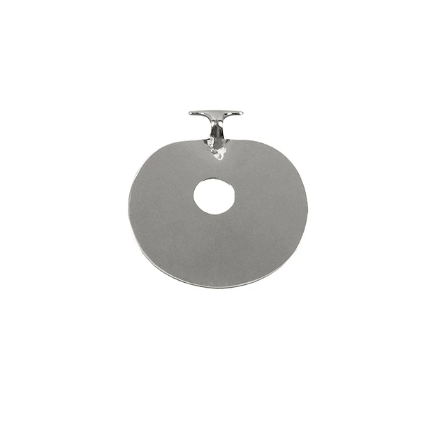 Ce bijou en argent, fabriqué en France, est inspiré d’une pendeloque circulaire (Sardes (Turquie), Royaume Lydien (800-500av. J.-C.); Or) conservée au musée du Louvre.