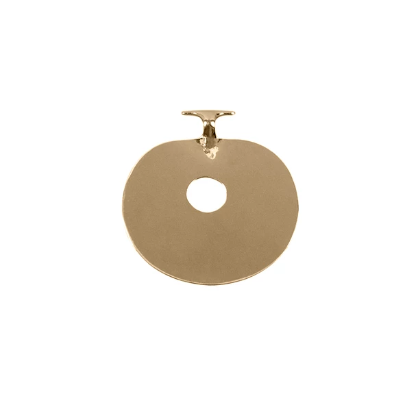 Ce bijou en plaqué or, fabriqué en France, est inspiré d’une pendeloque circulaire (Sardes (Turquie), Royaume Lydien (800-500av. J.-C.); Or) conservée au musée du Louvre.
