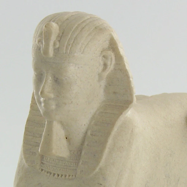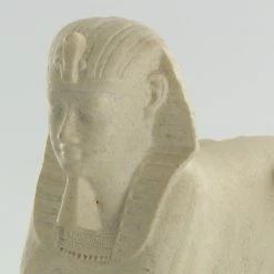 Le sphinx, créature à corps de lion et à tête humaine, est apparu très tôt dans la civilisation égyptienne. Le plus célèbre reste celui qui fut élevé à l’Ancien Empire sur le site des pyramides de Gizeh. Il combine l’intelligence et l’autorité du roi à la puissance physique du lion. Celui-ci, au nom du roi Nectanébo 1er, porte le némès, sorte d’étoffe plissée posée sur la perruque royale.