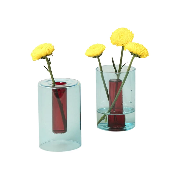 Deux vases en verre coloré en un, ils sont conçus pour laisser votre créativité s’épanouir et vous faire retomber amoureux des fleurs.