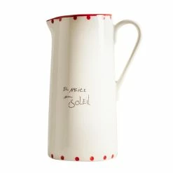 Pichet en faïence orné de détails contrastants et dont le motif est inspiré des manuscrits de Pablo Picasso (1881-1973).