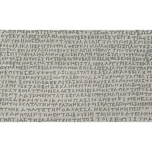 La pierre se compose de trois parties, les inscriptions portées sont un même texte rédigé en trois systèmes d’écritures différentes : des hiéroglyphes, du démotique et du grec.