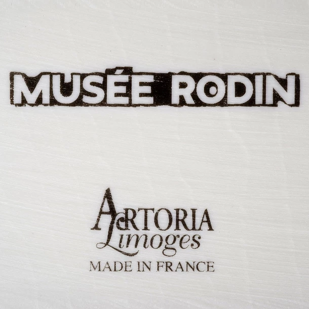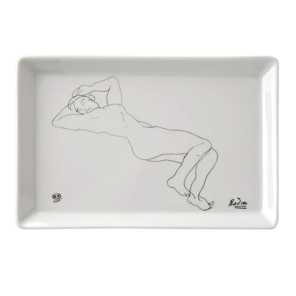 Ce plateau est illustré avec une sérigraphie sur porcelaine blanche de Limoges reproduisant un dessin d’Auguste Rodin.