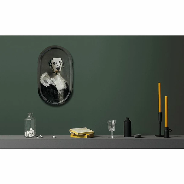 Plateau à utiliser pour le service, puis à exposer librement au mur comme une œuvre picturale, une peinture mythologique.