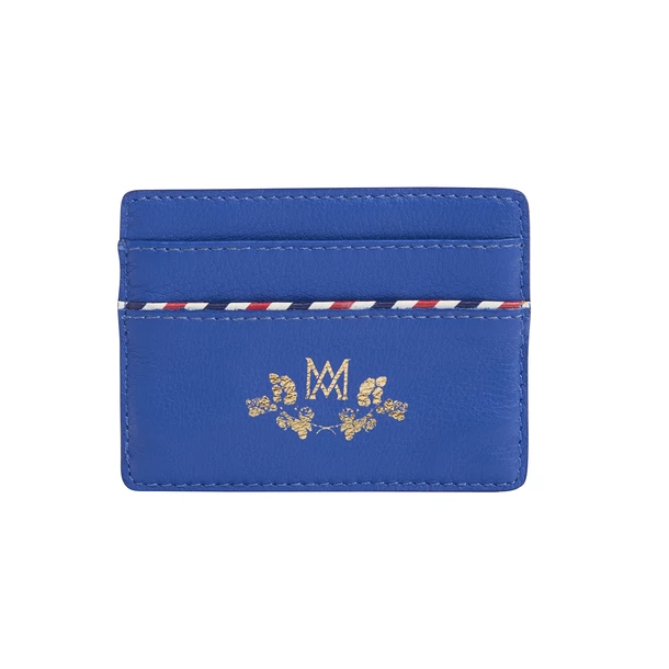 Porte-cartes bleu Ines de la Fressange en cuir offrant une réinterprétation du monogramme de la Reine Marie-Antoinette