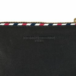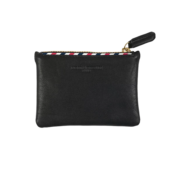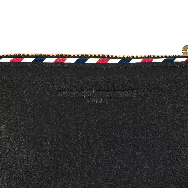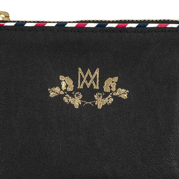 Porte-monnaie à zip Ines de la Fressange en cuir noir offrant une réinterprétation du monogramme de la Reine Marie-Antoinette.