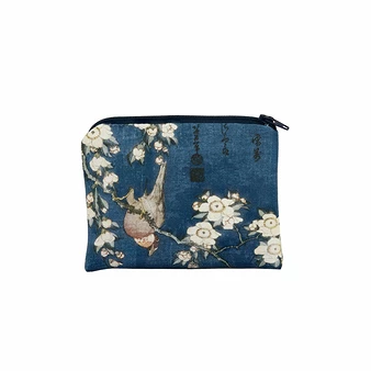 Le visuel de ce porte-monnaie s’inspire d’un détail d’une des œuvres de la série des Petites fleurs de l’artiste japonais Katsushika Hokusai (1760-1849), « Bouvreuil et cerisier-pleureur en fleur », 1834.