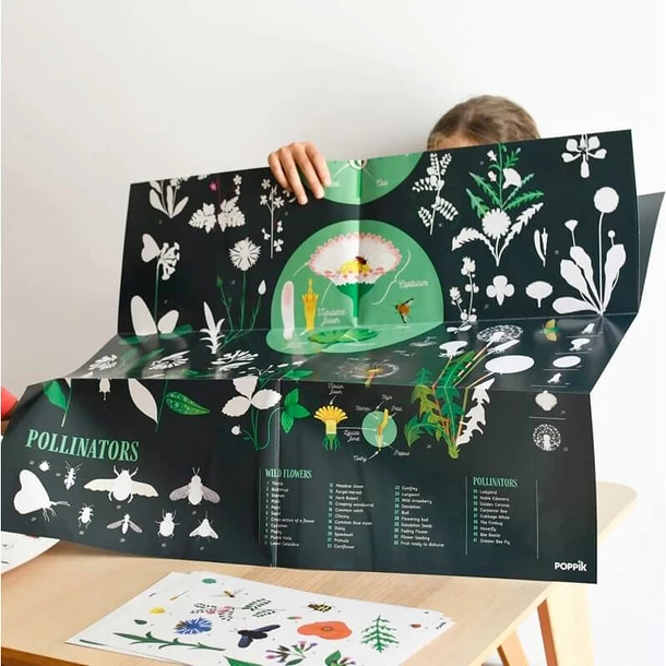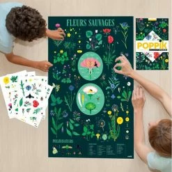 Avec ce poster à compléter avec des stickers, les enfants se passionnent pour les fleurs sauvages : coquelicots, pissenlits ou encore fraisier… Les enfants reconstituent ainsi un immense herbier, inspiré des planches naturalistes. Effet bluffant !