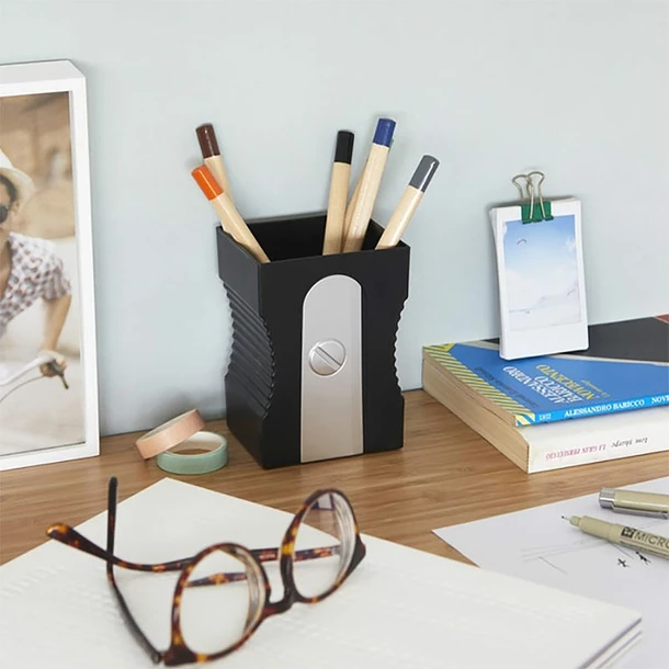 Pot à Crayons En Plastique – Taille-crayon Noir – Balvi