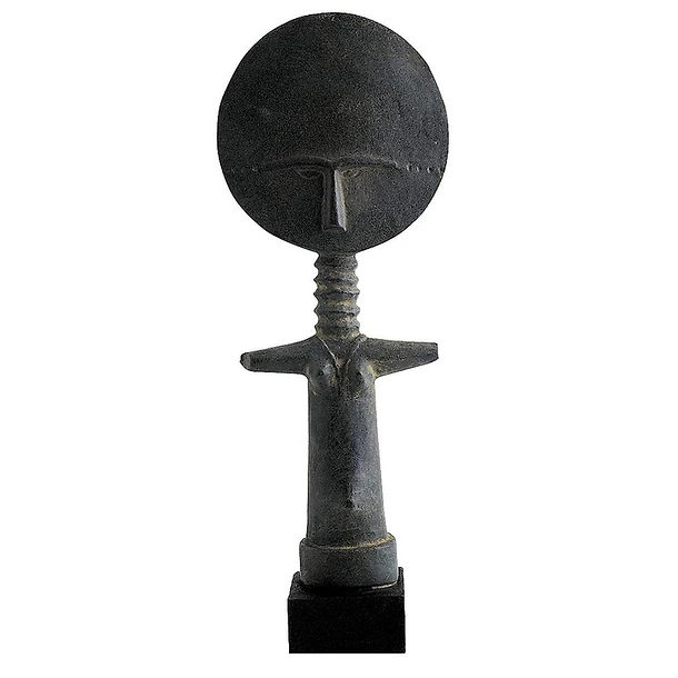 Reproduction patinée à la main sur socle en marbre. Moule réalisé à partir d’une empreinte de l’œuvre originale, une figurine en bois provenant du Ghana.