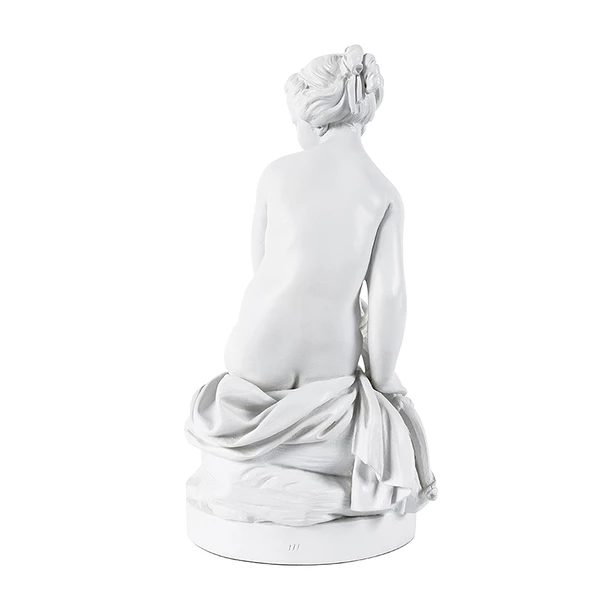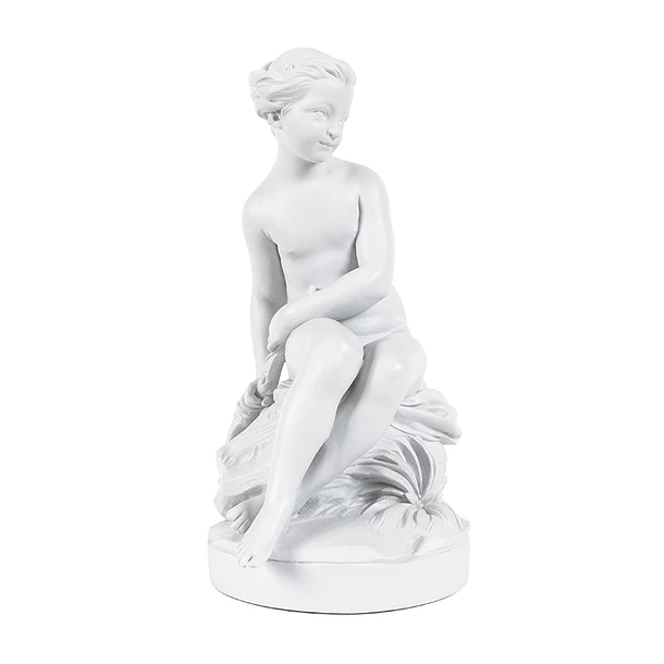 Comme son pendant masculin la fillette est nue et semble faire montre d’autant d’espièglerie. Dans les deux cas, on ne peut que constater le goût du XVIIIe siècle pour des thèmes amoureux qui ne sont pas dénués d’équivoque (ces enfants ont-ils bien l’âge de se mêler des jeux de l’amour ?), équivoque qui est effacée ou pardonnée grâce à la référence évidente à l’Antiquité.